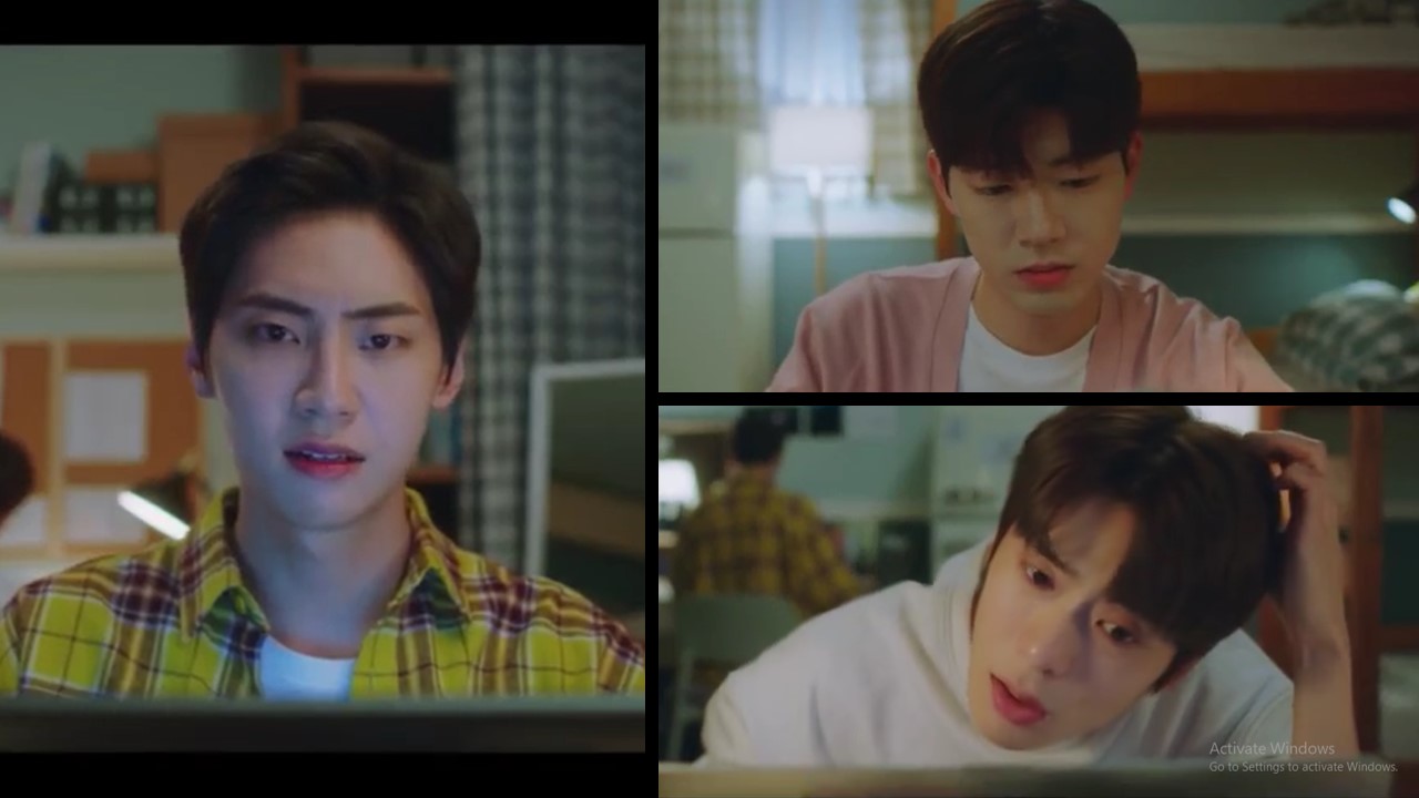 menyelesaikan codingnya, Minho membantu Ha Neul memperbaiki kesalahan coding.