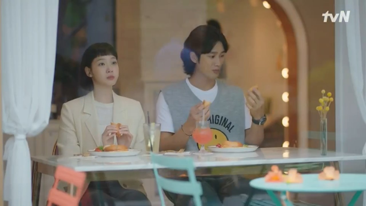 yang sedang tidur. Yumi dan Woong sedang berada di café, makan bersama dan
